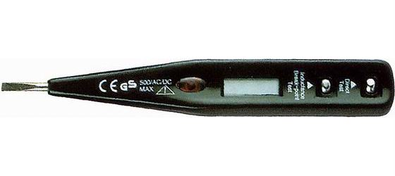 Uchopte zkoušečku tak, aby jste se dotkli horního kontaktu z vodivé gumy označeného „Direct test“. Když se hrotem dotknete vodiče nebo součástky pod napětím, objeví se displeji údaj o velikosti