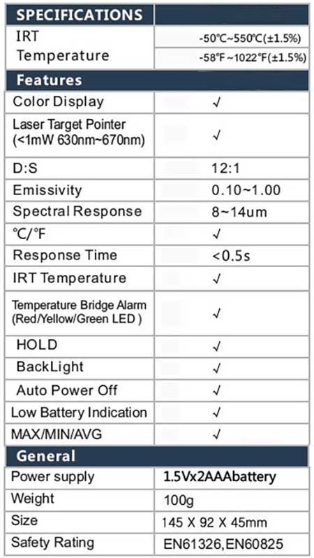 - rozsah měření: –50°C ... +550°C
