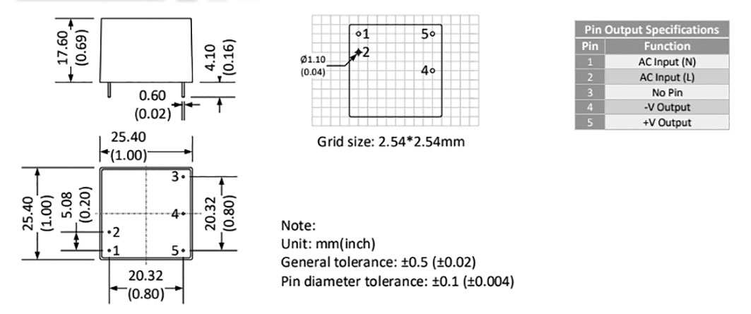Rozteč řad vývodů: 20.32mm