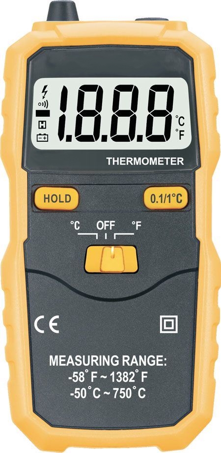 Teploměr s rozsahem -50 ... 750°C (-58 ... 1382°F)