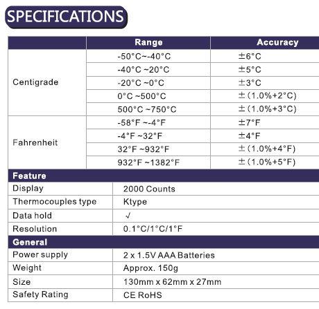 Rozsah přiloženého teplotního čidla:-50°C ...250°C (-58°F ... 482°F)