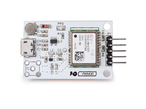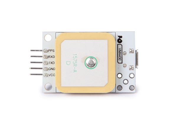 connections: VCC (+5 V), GND (ground), TX, RX, PPS (time pulse)