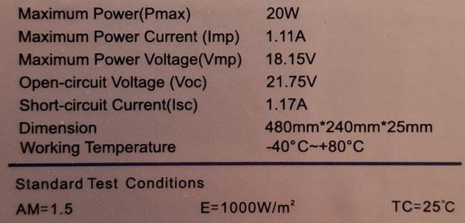 Max.napětí přizátěži 20W: Vmp=18,15V