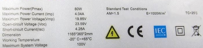Max.napětí při výkonu 150W: Vmp=18,71V
