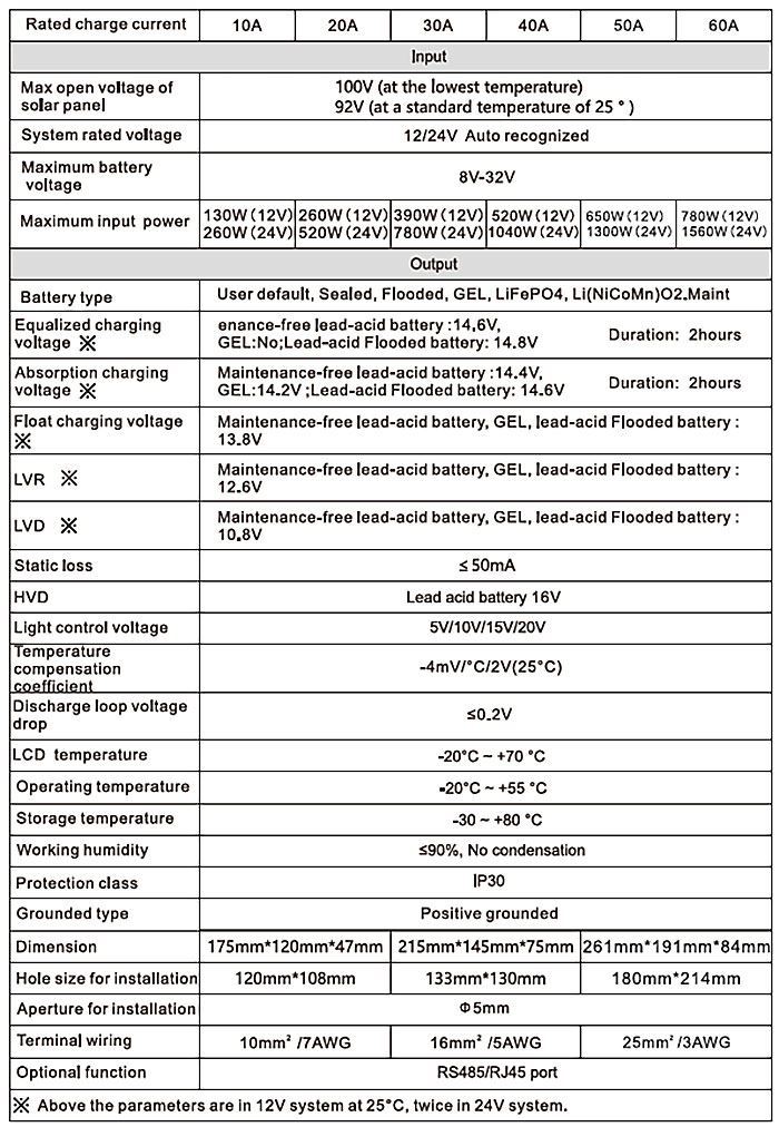 Max. výkon FV panelů: 260W (520W-24V) pro maximální využití regulátoru.