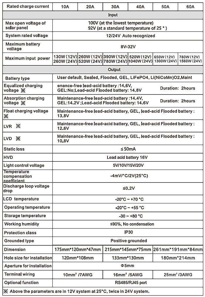 Max. výkon FV panelů: 780W (1560W-24V) pro maximální využití regulátoru.