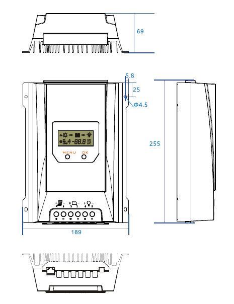 Max. výkon FV panelů: 520W (1040W-24V) pro maximální využití regulátoru.